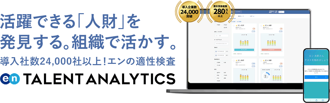 *エンが1987年より開発してきた「3Eテスト」と、それをより見やすく、使いやすいカタチで進化させた「Talent Analytics」の総受検者数合計(2012年度からの累計)です。